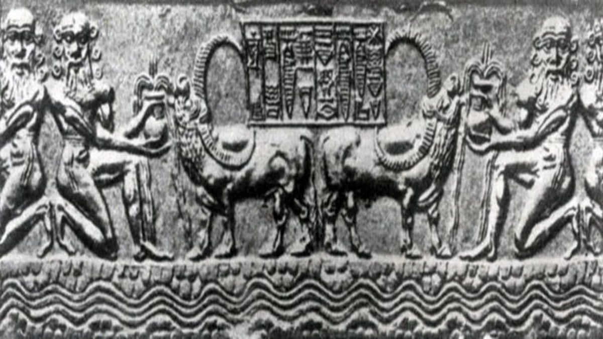 The horned head symbolizing a bull subsequently acquires the image of an Armenian letter… In the Sumerian-English dictionary, according to Armen Davtyan, this ideogram is transcribed, i.e., pronounced as tapar or possibly tabar, and the p-b transition is quite common (for example, Babylon-Babylon). Two heads depicted together and taken in a circle meant a group, a herd of animals, and this ideogram is transcribed as nahiru. And the Armenian word “nahir” means exactly a herd, a group of large horned cattle!