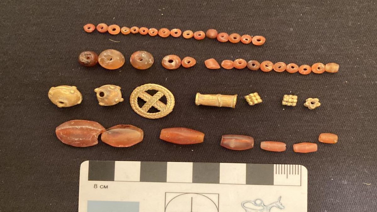 The tomb dates from the late Late Bronze Age (1300-1200 BC). Around the same time, the famous pharaoh Ramses II the Great ruled Egypt. Inside the tomb, archaeologists found more than a hundred beads and gold pendants. Some of them are a bit like Celtic crosses. There were also dozens of carnelian pendants.
