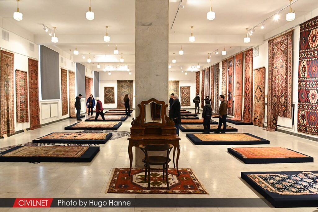Exhibition of the rescued carpets of Shushi in an exhibition currently on display in Yerevan, Armenia. (photo by Hugo Hanne for CIVILNET and used with permission)