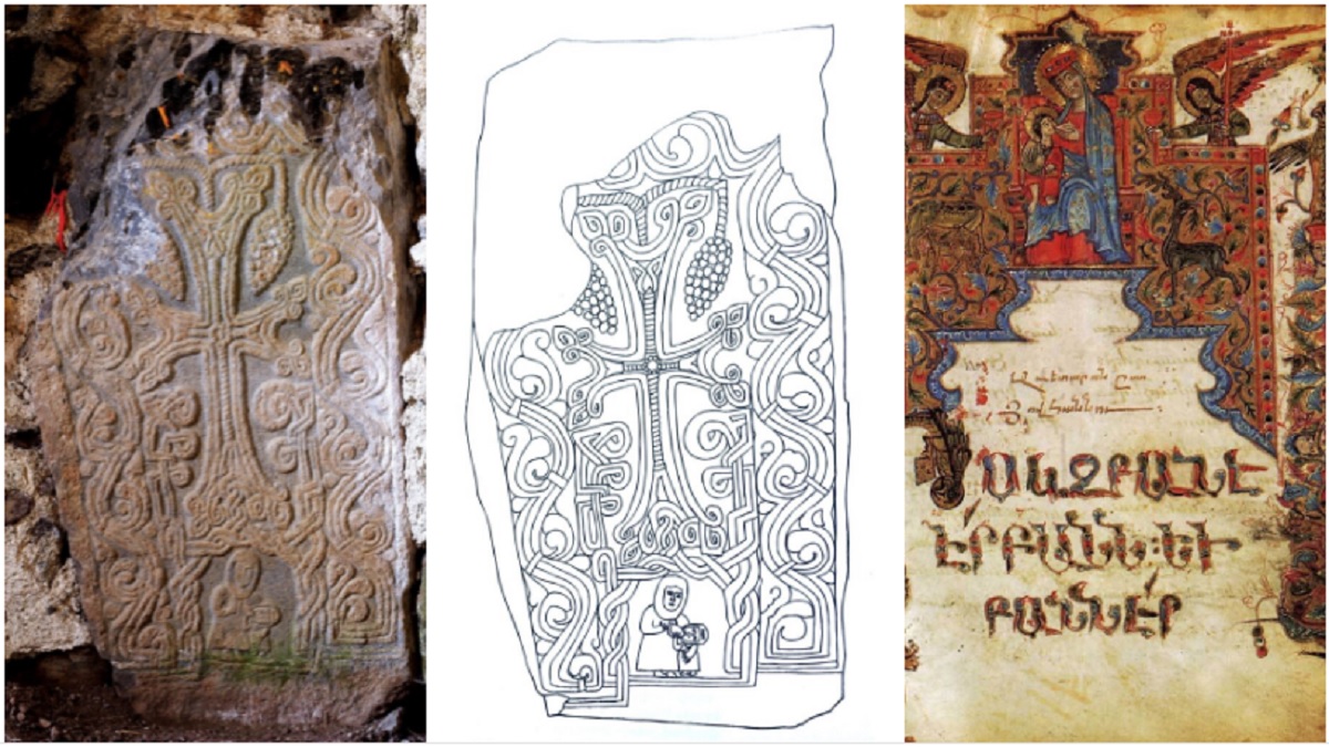A striking case in point is the “Mother and Child” khachkar of the monastery of Handaberd. As part of the province of Karvajar, Handaberd was surrendered to Azerbaijan on November 25, 2020. The khachkar is affixed to the north wall of a small chapel lying north of the monastery’s main church. Based on physical context, style, and iconography, Hamlet Petrosyan, the preeminent scholar of khachkars, dates the Handaberd example to the late 12th or early 13th century.