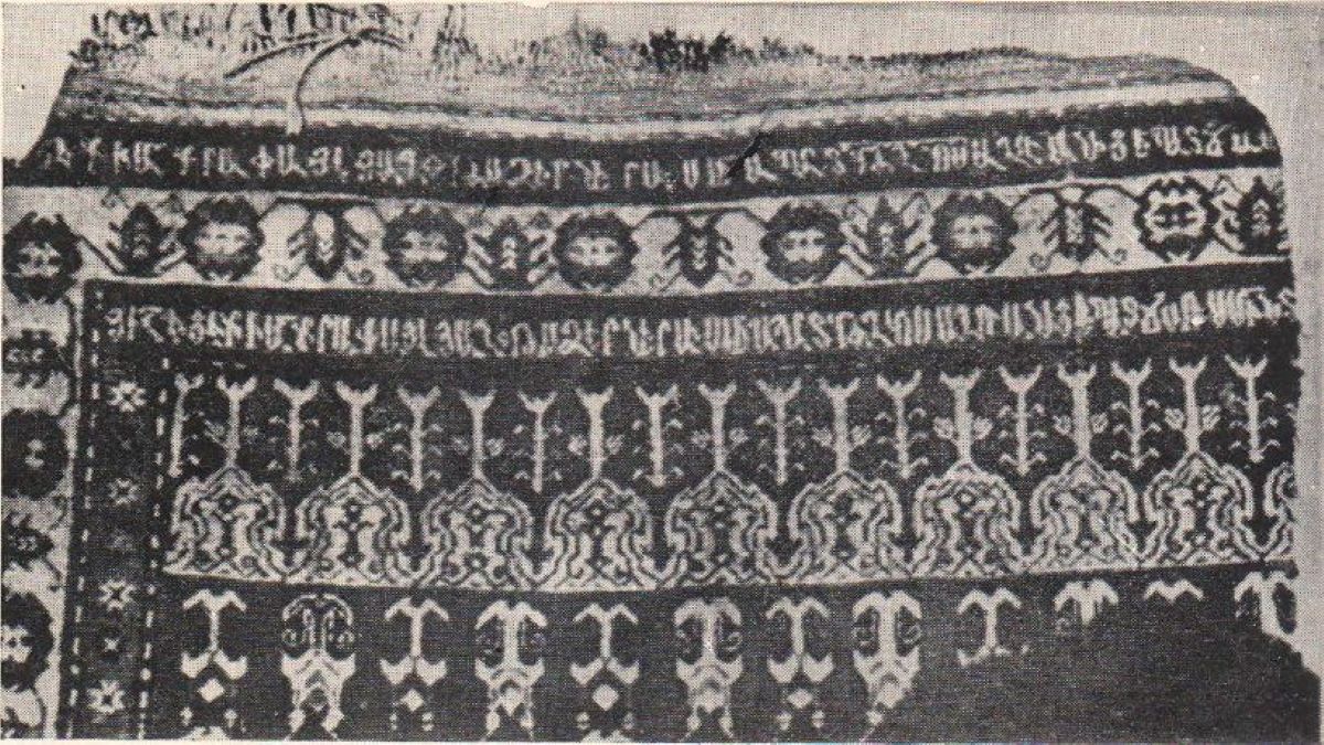 Kurdian personally inspected and researched the structure of the carpet and its genealogical source. The carpet has an extensive inscription in Armenian letters and numbers, which is woven in the upper part of the carpet—along the entire width of the outer and inner narrow areas