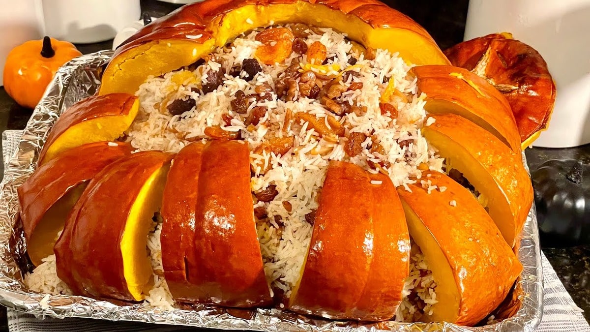 Ghapama Armenian Traditional Dish/Stuffed Pumpkin with rice, nuts & dried fruits