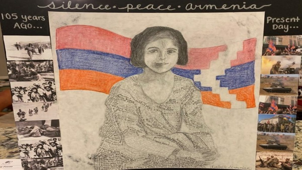 The theme of the contest was “I Matter Because…” Feeling the emotions from the war at that time in Artsakh (Nagorno Karabakh), she connected the 1915 Armenian Genocide to the war with Azerbaijan and submitted the following statement with her artwork: “I matter because I am the great-granddaughter of Zabelle, the woman in my drawing.