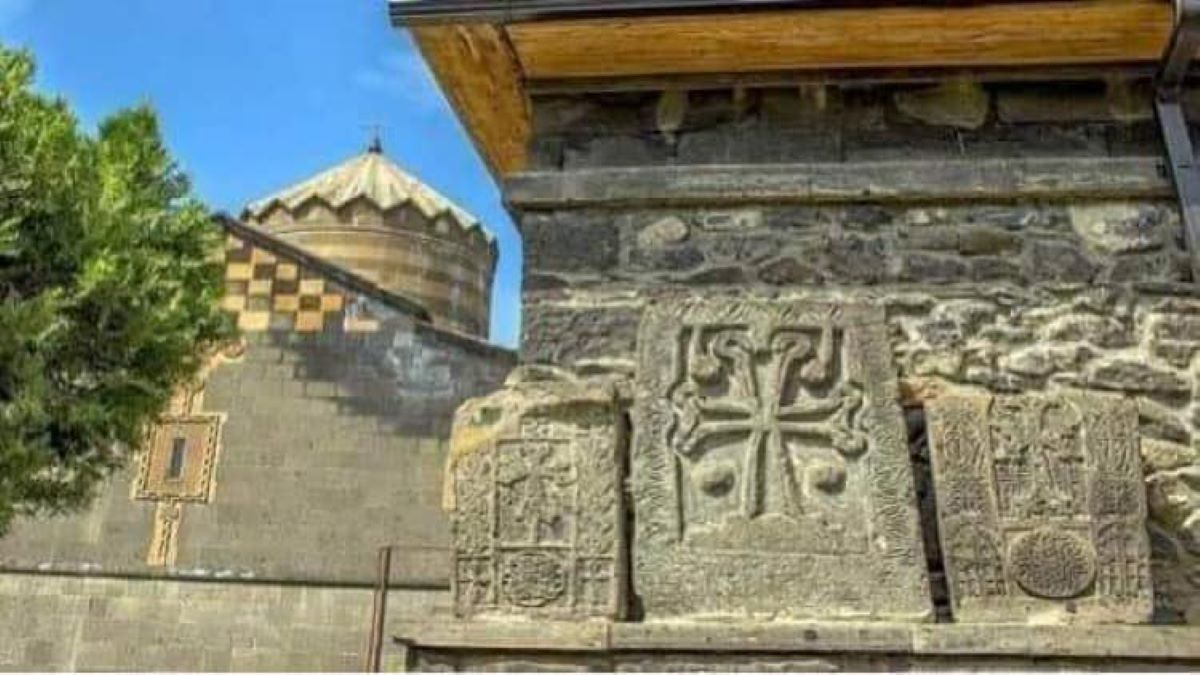 The church of Saint Gevork is a rectangular domed basilica built of black, yellow, and red tuff stones.