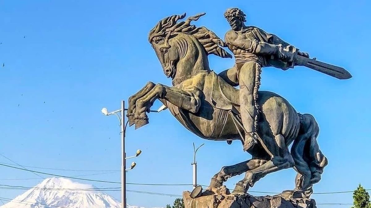 The sculpture dedicated to the legendary hero of the Armenian national epic David Sasuntcy was created in 1959 by the famous Armenian sculptor Ervand Kochar and architect Mikael Mazmanyan.
