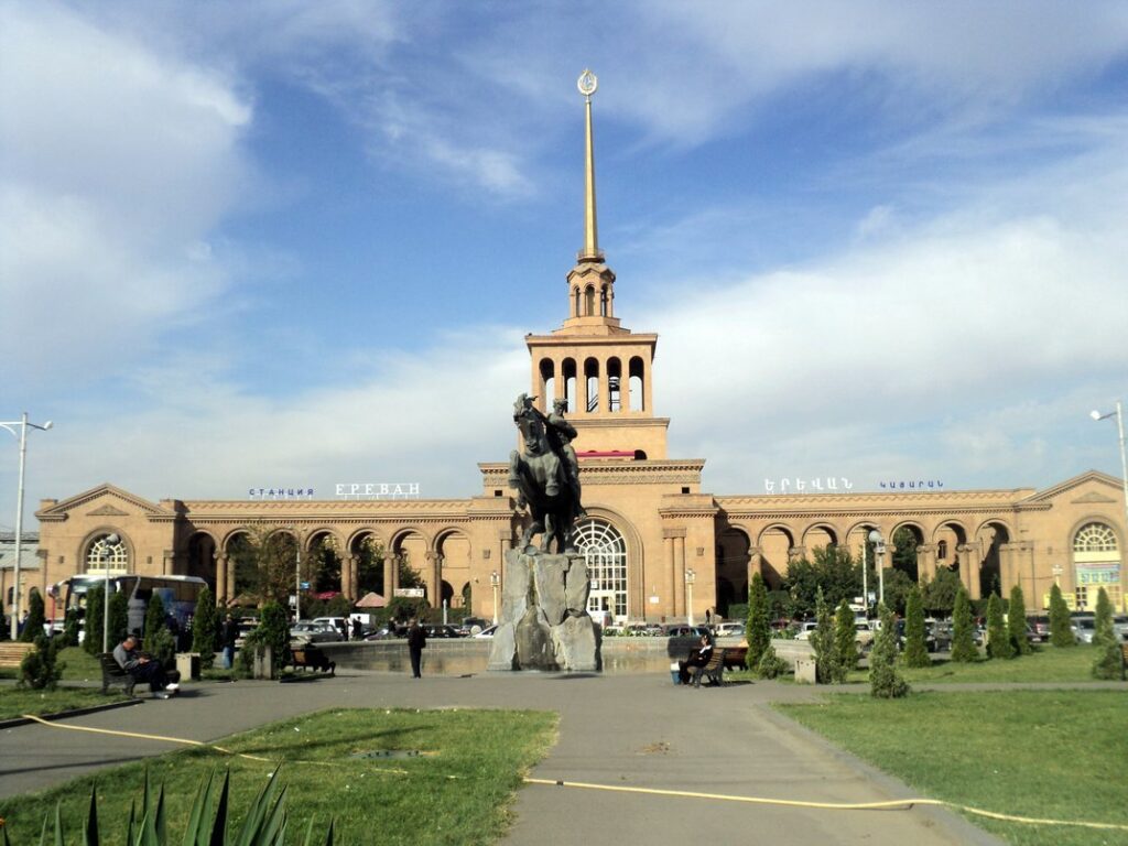 Yerevan Railway Station presides over Sasun Square, which also features a copper-made statue of David of Sasun on horseback—the hero of Armenia’s national epic, Daredevils of Sasun—erected in 1959. The U.S.S.R. issued both stamps and coins depicting its image.