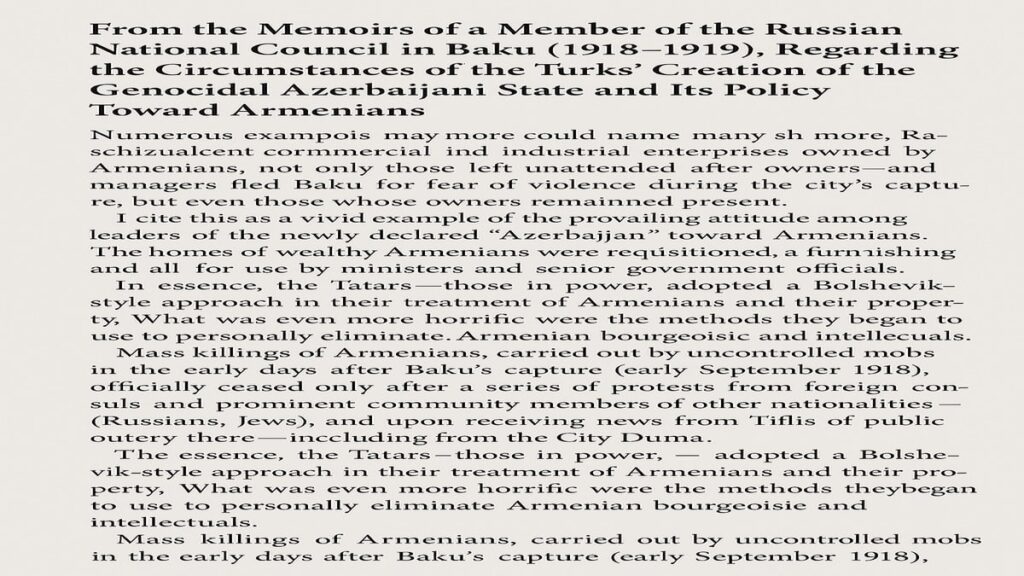 From the Memoirs of a Member of the Russian National Council in Baku (1918–1919), Regarding the Circumstances of the Turks’ Creation of the Genocidal Azerbaijani State and Its Policy Toward Armenians