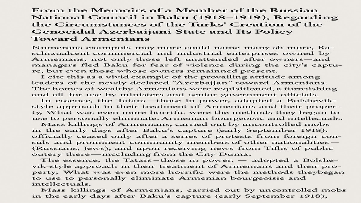 From the Memoirs of a Member of the Russian National Council in Baku (1918–1919), Regarding the Circumstances of the Turks’ Creation of the Genocidal Azerbaijani State and Its Policy Toward Armenians