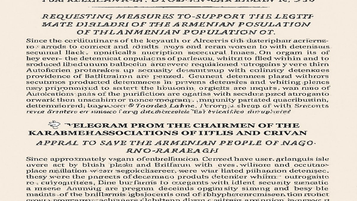 On behalf of the many Karabakh Armenians residing here—whose families are being annihilated—we earnestly appeal to the Parliament and Government of Armenia to take all possible and vigorous measures to save the people of Karabakh.