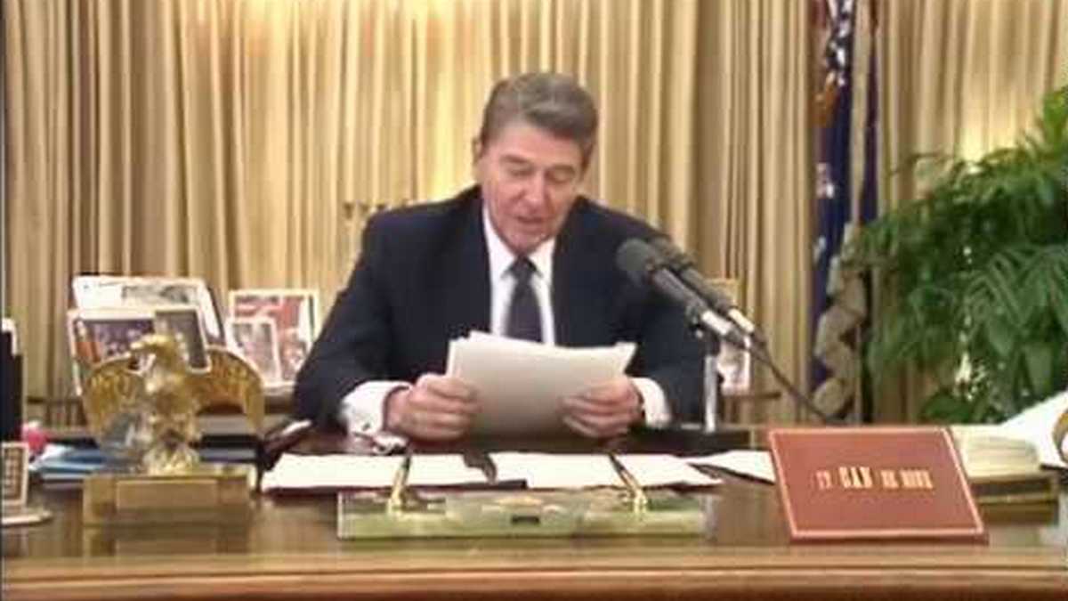 ”Tomorrow is a day for celebration – celebration of the birth of Jesus Christ,” Mr. Reagan said in his weekly radio address. He spoke of the traditions of Christmas and added that this was a ”happy season featuring Hanukkah as well.”