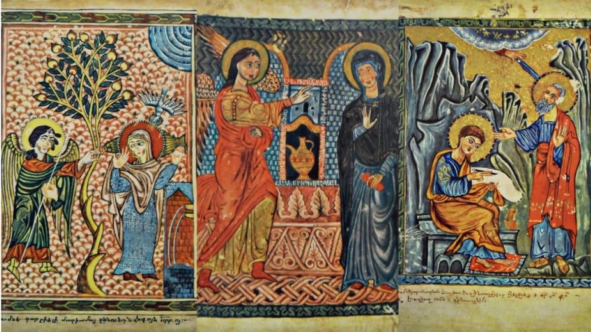 At the beginning of the manuscript Momik placed the main events of the Gospel; by portraying them in the following sequence with an amazing artistry; Annunciation of the Lord, Birth, Candlemas Day (Tyarndarach), Transfiguration, Entry into Jerusalem, Washing of the Feet, Crucifixion, Lamentation, Rise, Ascension, Feast of Pentecost.