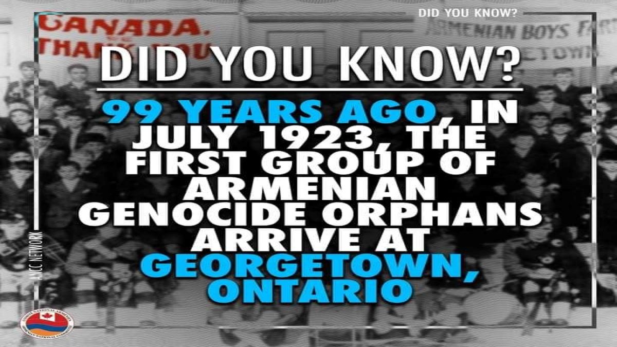 99 years ago, in July 1923, the first 46 Armenian Genocide Orphans arrived at Georgetown, Ontario.