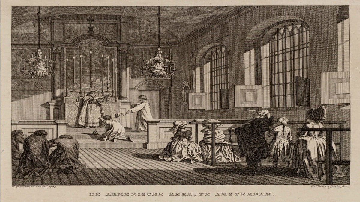 In 1714, forty Armenian merchants came together to purchase this warehouse, seeing potential beyond its storage capacities. With shared vision and effort, they transformed the space into a sacred place of worship. The result was the Surb Hoqi Church, established on the first floor of the building. This strategic use of space allowed the remaining areas of the building to serve as a community center, fostering gatherings, cultural events, and strengthening the ties of the Armenian community in Amsterdam.