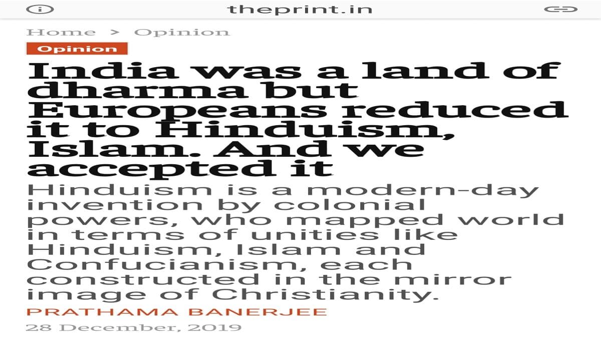 What is the average person’s reaction when they see an article like this? They either become intrigued to learn more, or they will laugh out of ignorance. Why is this Indian professor saying that Hinduism never existed? Which Christianity is this professor talking about when she says “mirror image of Christianity”?
