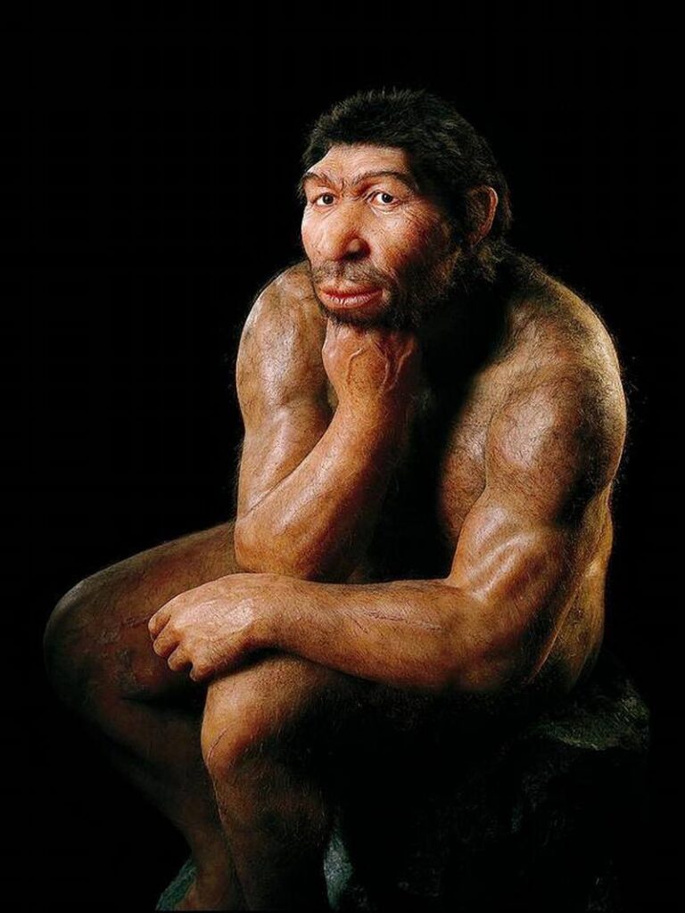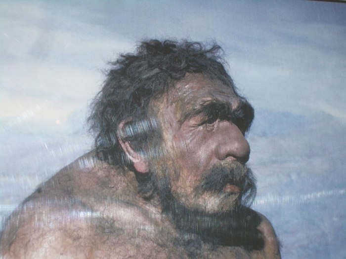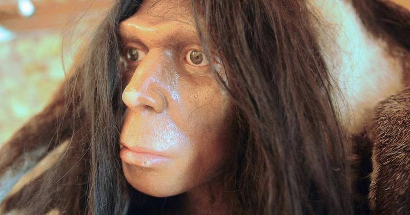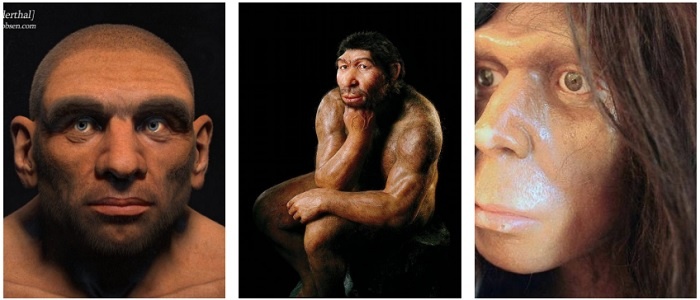 The photographs show reconstructed images of Neanderthals.
