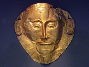 Death mask, known as the Mask of Agamemnon, 16th c. BC, the most famous artifact of Mycenaean Greece.