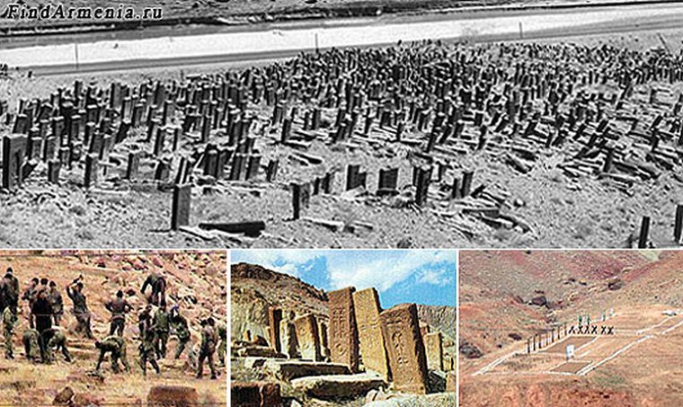 On his way to Julfa on the third day, Sim noticed the ruins of the Jugha cemetery. He saw “three ridges covered with stone slabs, and a hill. All the tombstones were turned upside down.”