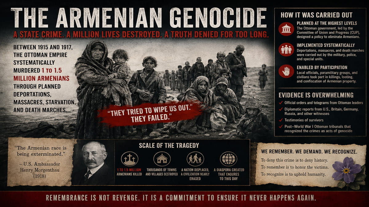 The Armenian Genocide (1915–1921 …) was not an accident of war, nor a tragic byproduct of chaos. It was a deliberate, centrally organized campaign of destruction, conceived and executed by the leadership of the late Ottoman Empire. The scale, coordination, and intent behind these events place them firmly within the definition of genocide as understood in modern international law.